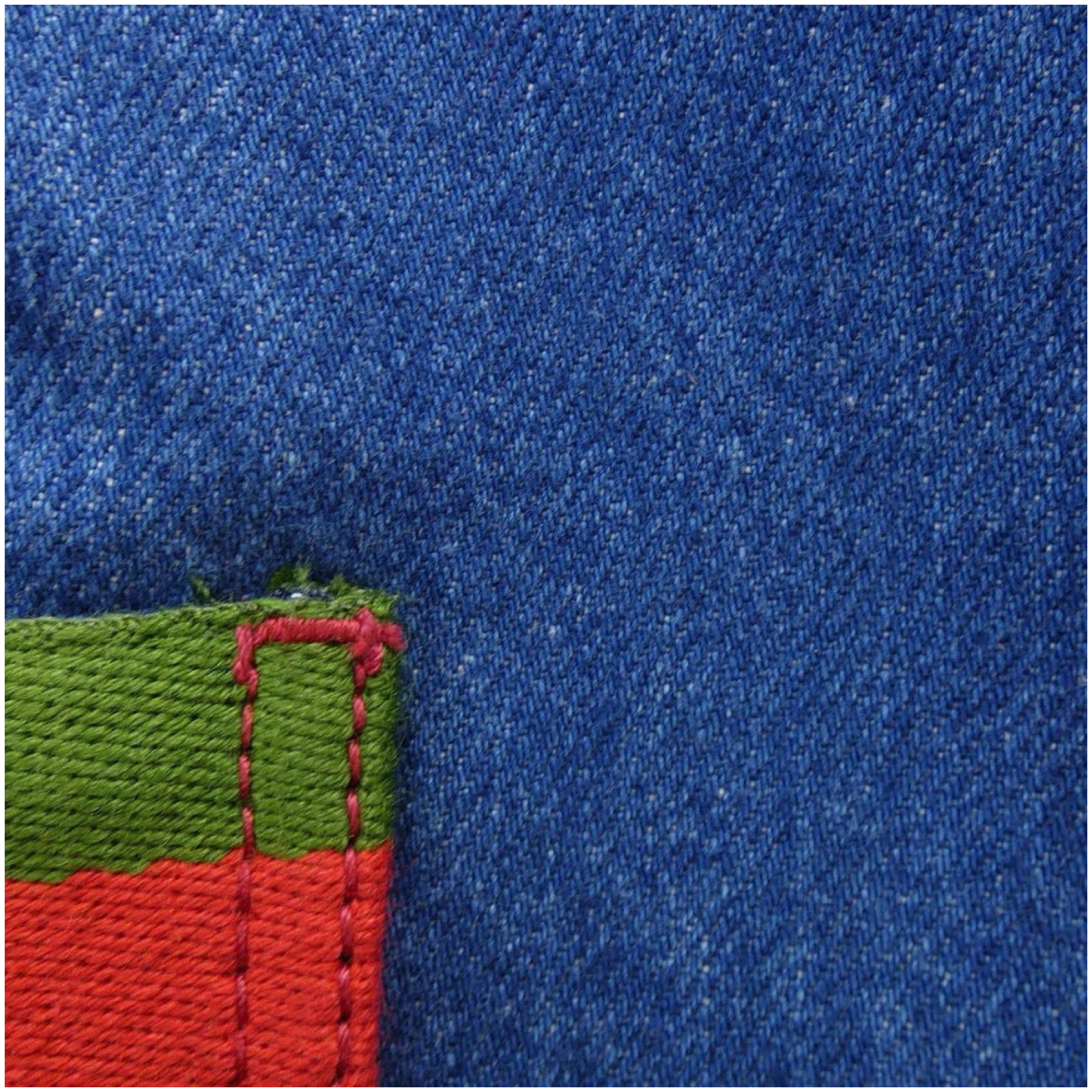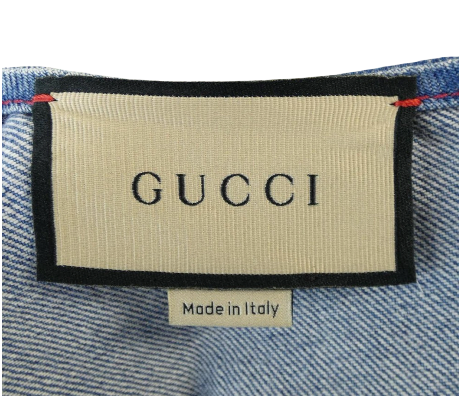 Pre-Owned Designer DressThis authentic designer denim dress features a structured shift silhouette with short sleeves and signature web detailing on the front pockets. Crafted in sturdy denim with no stretch, it offers a clean, tailored look that works best for petite frames.